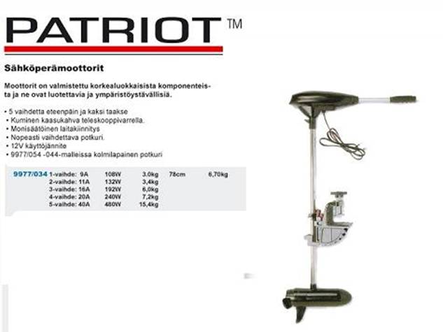 Palkintona kilpailussa on PATRIOT sähköperämoottori;